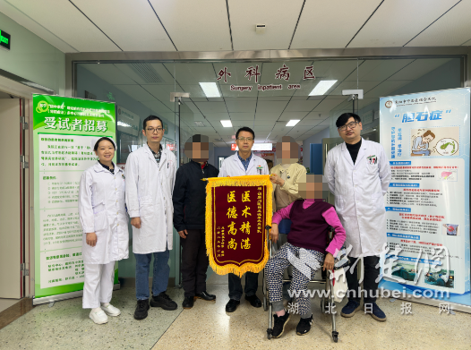 荆楚网(湖北日报)讯(通讯员 赵雁雁珠)近日,82岁的李爷爷携家人向湘港医院中西医结合泌尿外科送上了绣有“医术精湛、医德高尚”的锦旗。患者紧紧握着医院副院长胡必川的手,激动地说:“是胡院长和医疗团队让我重获新生,我现在不用带着造口管生活了!”