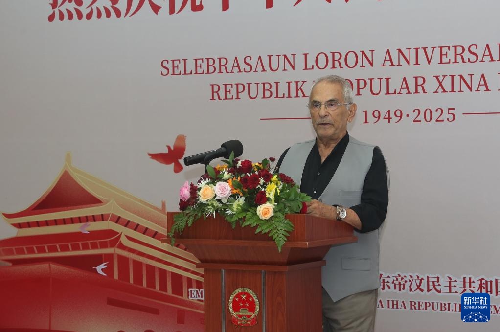 9月16日,东帝汶霍尔塔(East Timor Holta)总统向接待处发表了演讲,庆祝中国大使馆在迪利(East Timor)举行的中国大使馆成立的中华人民共和国成立76周年。东帝汶总统霍尔塔(Horta)在16日表示,东中国和中国尊重促进外交关系,专注于平等合作并建立牢固友谊的23年过程中的每一个。新华社记者Cen Yunpeng摄